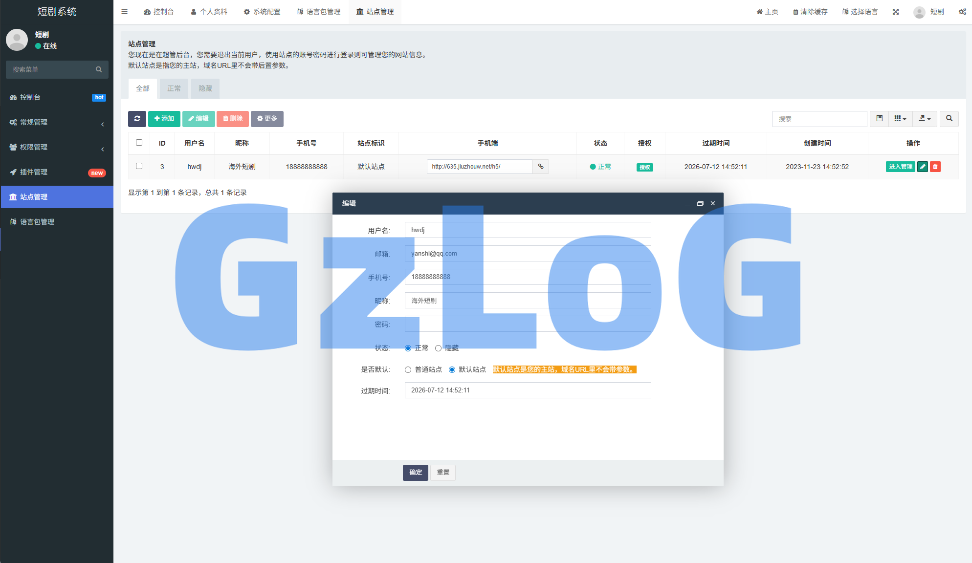6.支持SAAS版本,子站点多开