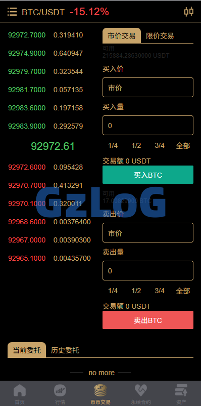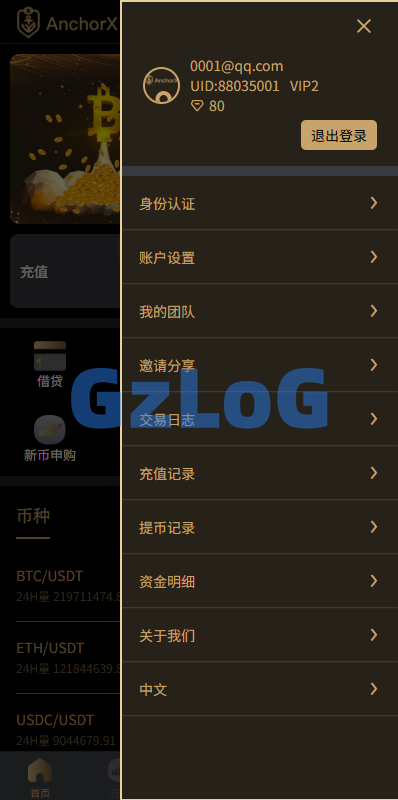 系统功能:币币交易,期权交易,永续合约,申购,贷款,矿机理财