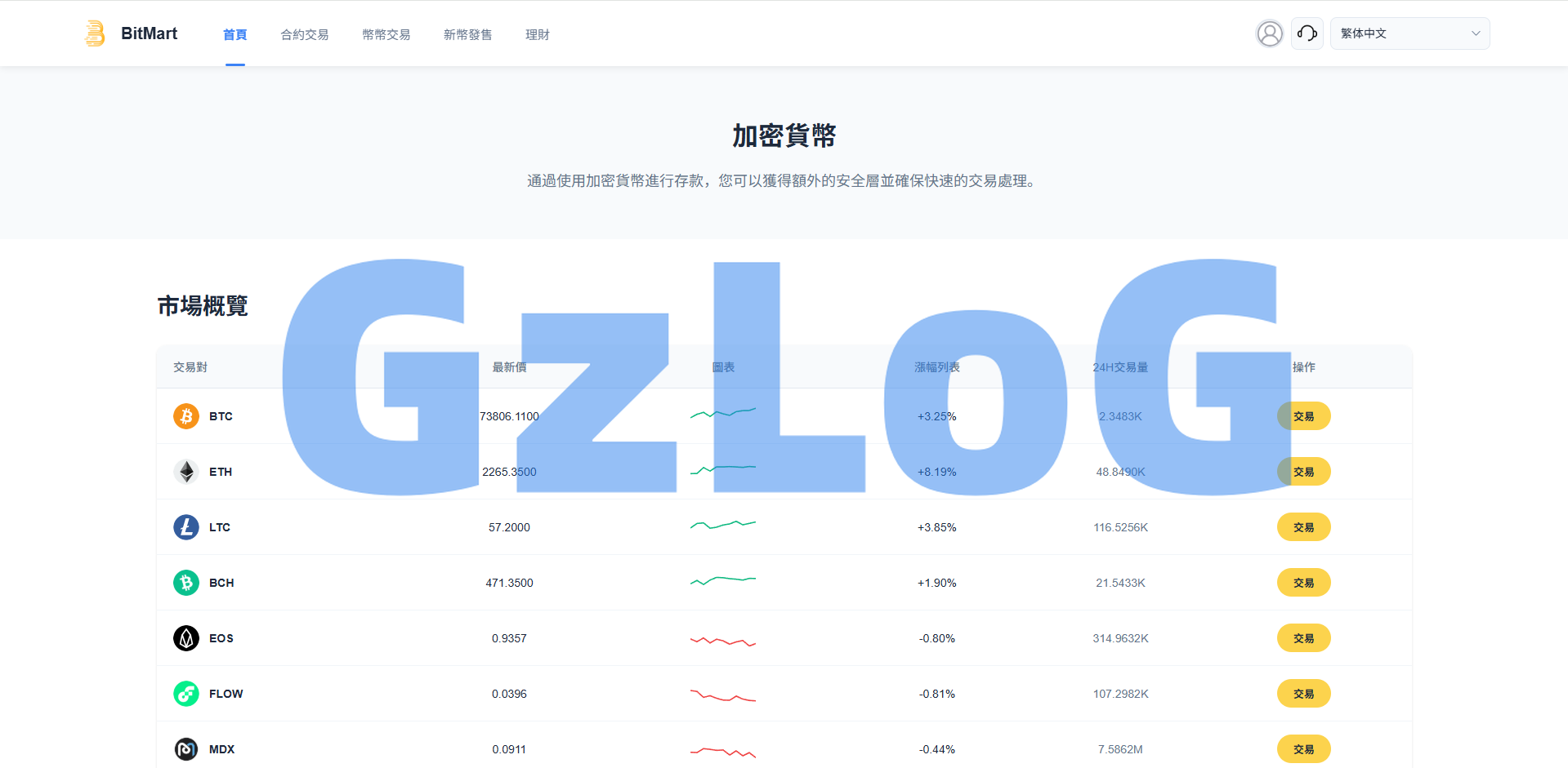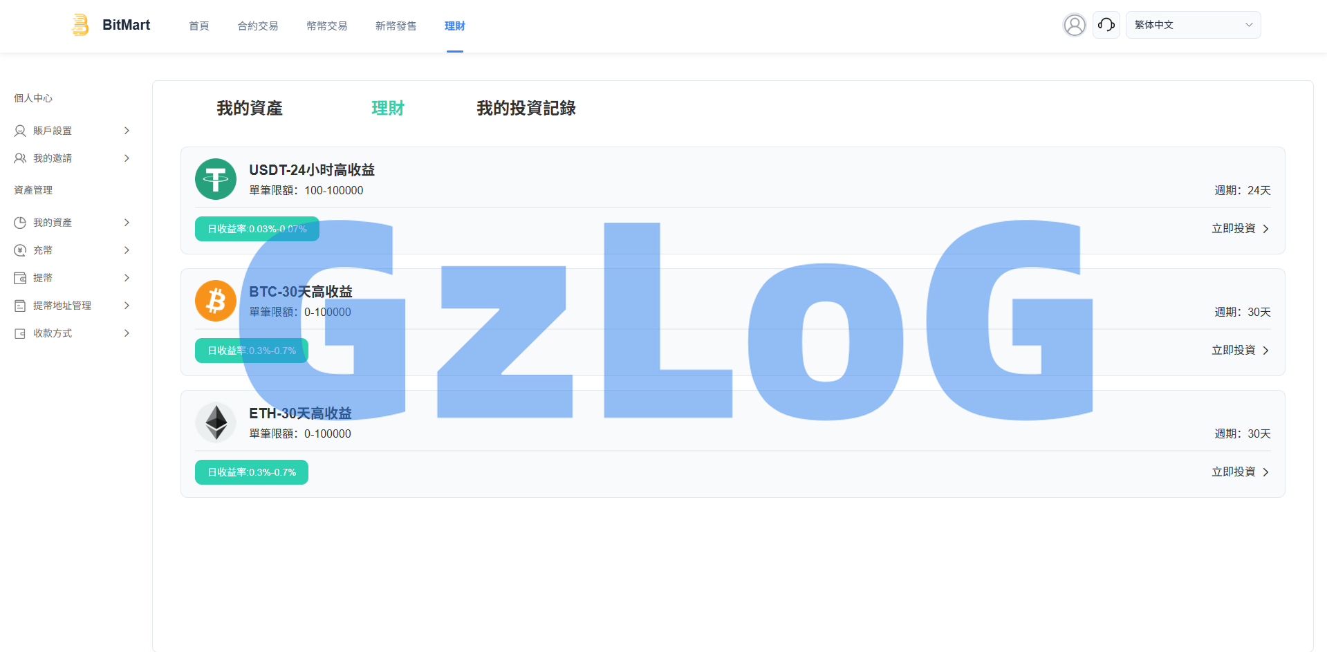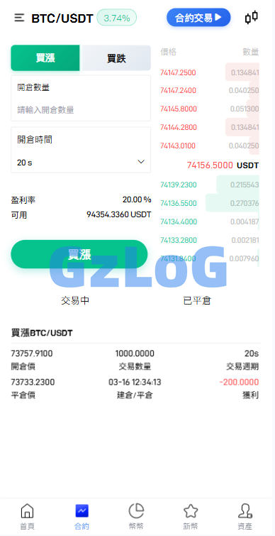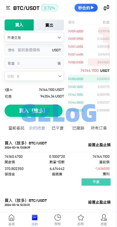 支持秒合约、合约交易、币币交易、平台币、认购、理财等